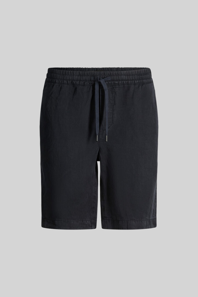 Šveices modes zīmola Strellson tumši pelēkzili vīriešu Bermudu stila šorti ar elastīgu sasienamo jostasvietu. Izgatavoti no komfortabla liocela un linu materiāla. Papildināti ar kabatām un smalkām zīmola logotipa detaļām.