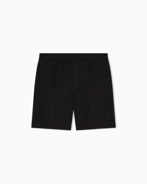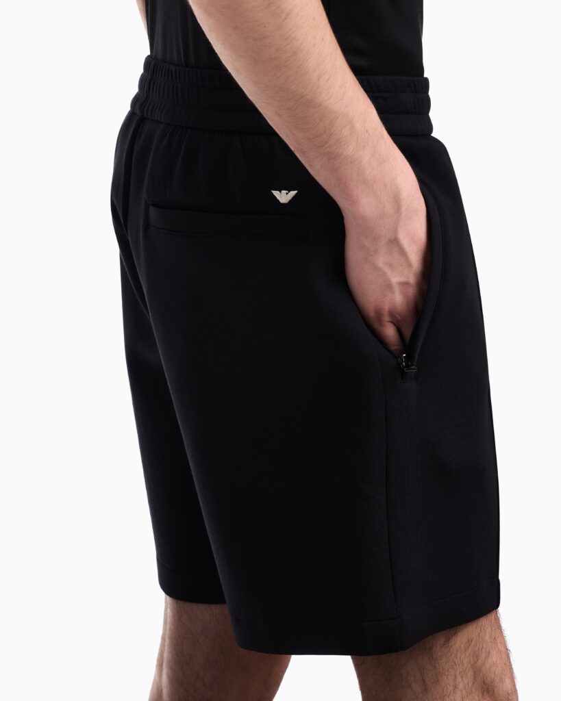 Itāļu luksusa zīmola Emporio Armani melni vīriešu šorti no Essentials kolekcijas. Izgatavoti no blīva un elastīga kokvilnas maisījuma džersija materiāla. Papildināti ar elastīgu, iekšpusē sasienamu jostasvietu un rāvējslēdzēju aizdares kabatām. Akcentēti ar kontrastējošu zīmola logotipa- ērgļa izšuvumu mugurpusē.