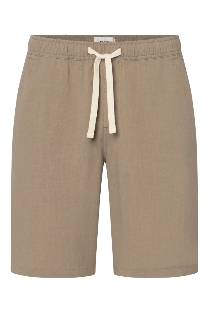 Vācu modes zīmola Joop! tumši bēši Bermudu stila šorti ar elastīgu sasienamo jostasvietu. Izgatavoti no viegla liocela un kokvilnas materiāla. Papildināti ar rāvējslēdzēja aizdares kabatu sānā un smalku vientoņa logo izšuvumu uz kabatas mugurpusē.