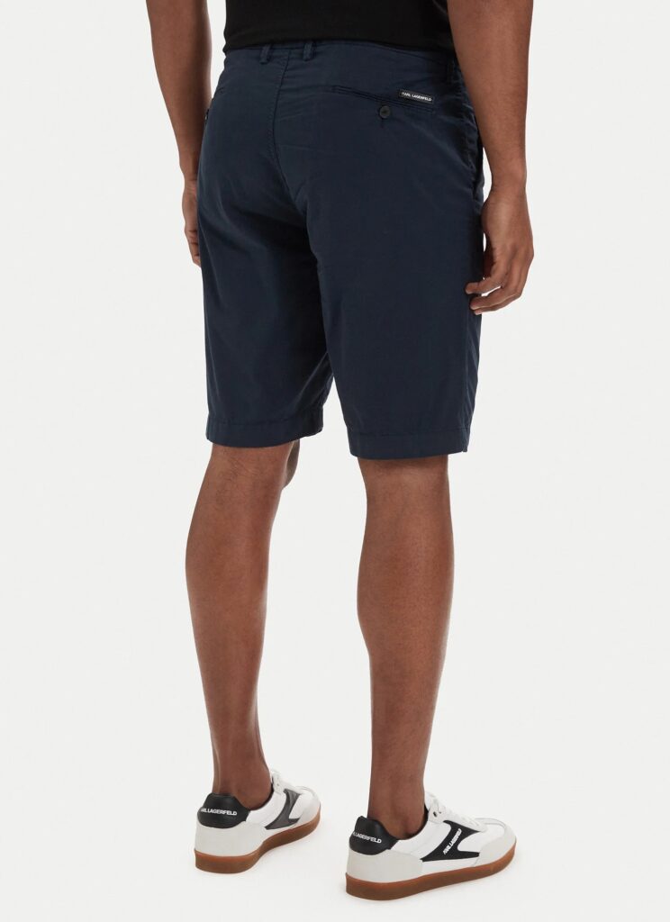 Vācu luksusa zīmola Karl Lagerfeld īpaši komfortabli vīriešu šorti tumši zilā krāsā. Izgatavoti no mīksta un viegli elastīga kokvilnas materiāla. Papildināti ar kabatām un zīmola logotipa akcentu mugurpusē.