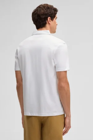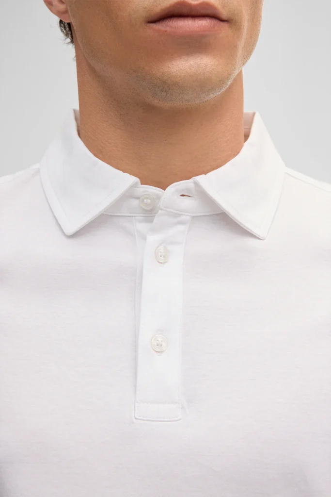 Šveices modes zīmola Strellson klasisks vīriešu polo krekls baltā krāsā. Izgatavots no blīva un gluda augstākās kvalitātes kokvilnas materiāla. Papildināts ar askētisku vientoņa logotipu apakšmalā.