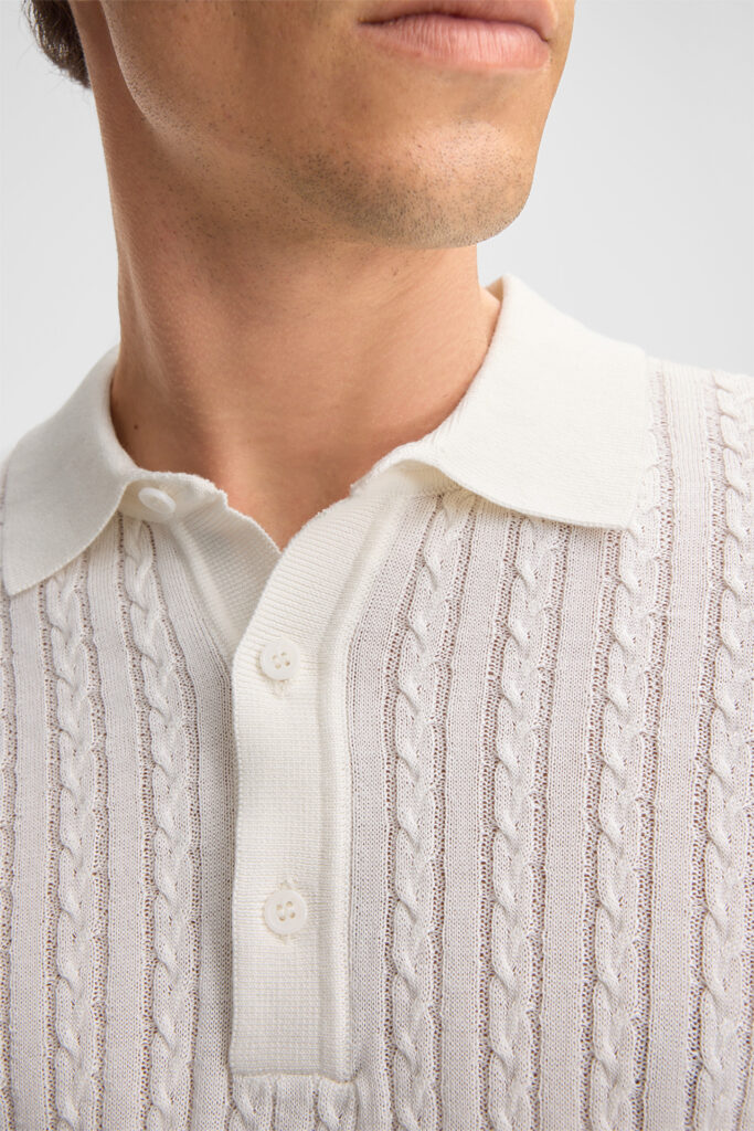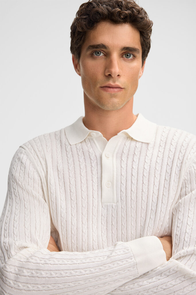 Balts organiskās kokvilnas džemperis ar polo apkakli