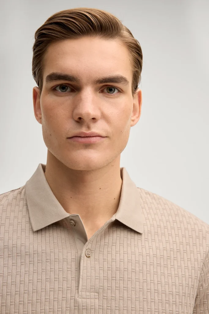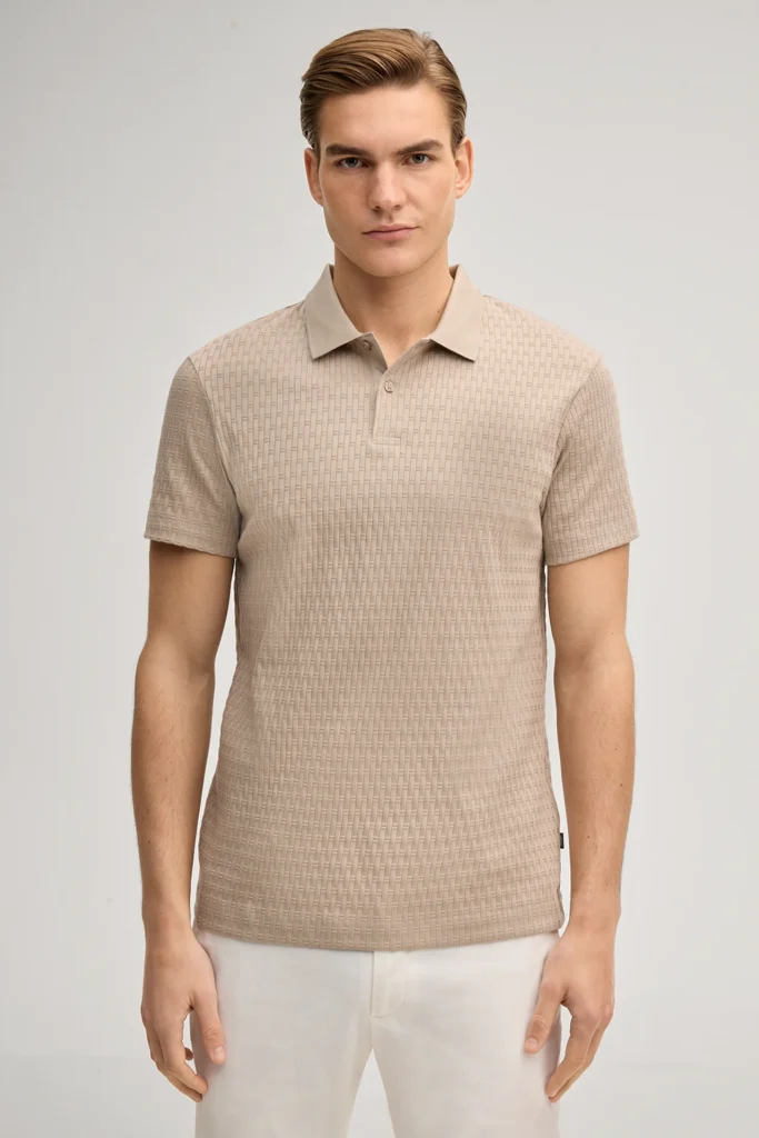 Bēšs kokvilnas polo krekls ar grafisku struktūru
