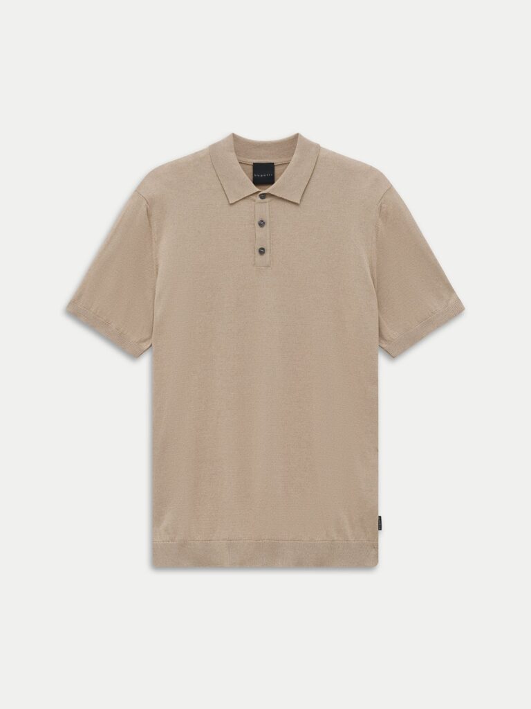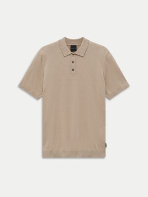 Vācu modes zīmola Bugatti bēšs smalka adījuma polo krekls vīriešiem. Izgatavots no plāna kokvilnas maisījuma materiāla ar viegli raibu struktūru. Papildināts ar smalki rievotu apdari un zīmola emblēmu sānu vīlē.