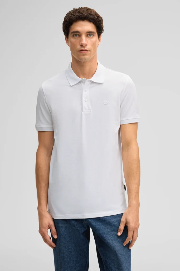 Elastīgs organiskās kokvilnas polo krekls, balts