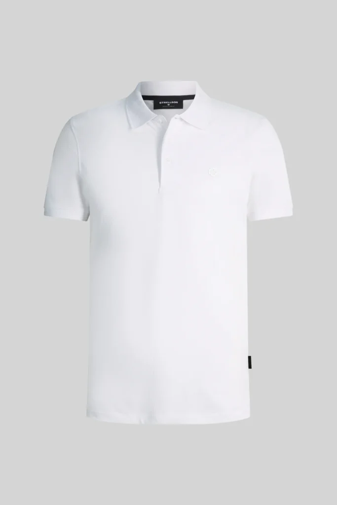 Šveices modes zīmola Strellson klasisks vīriešu polo krekls baltā krāsā. Izgatavots no elastīga organiskās kokvilnas materiāla. Papildināts ar nelieliem sānu šķēlumiem un neuzkrītošiem zīmola logotipa akcentiem.