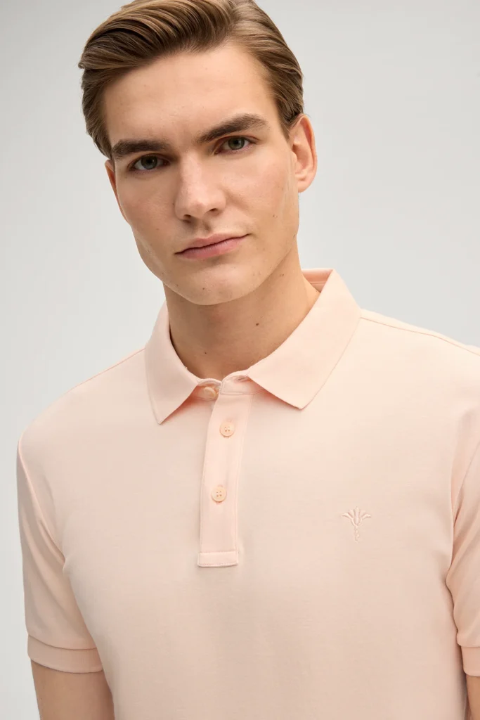 Gaiši oranžs bio kokvilnas polo krekls ar izšuvumu
