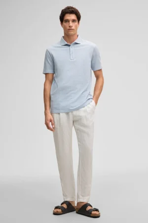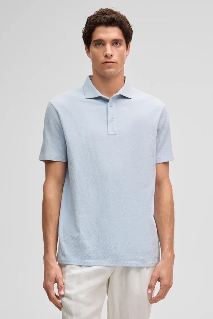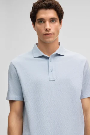 Gaiši pelēkzils bio kokvilnas polo krekls ar tekstūru