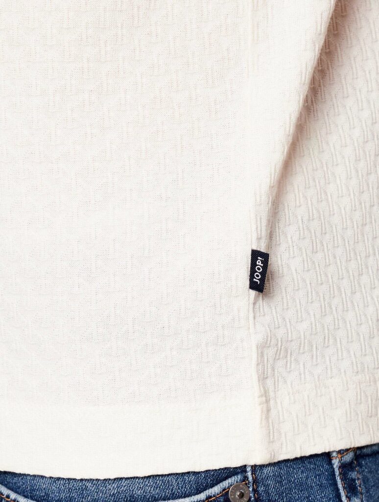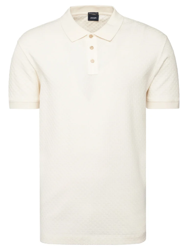 Vācu modes zīmola Joop! gaiši bēšs klasiska piegriezuma vīriešu polo krekls. Izgatavots no 100% kokvilnas ar dekoratīvu smalka adījuma tekstūru. Akcentēts ar kontrastējošu zīmola emblēmu sānu vīlē.