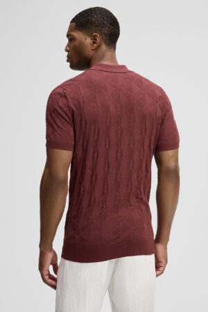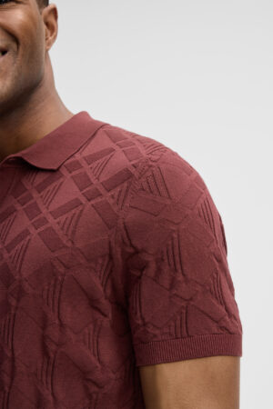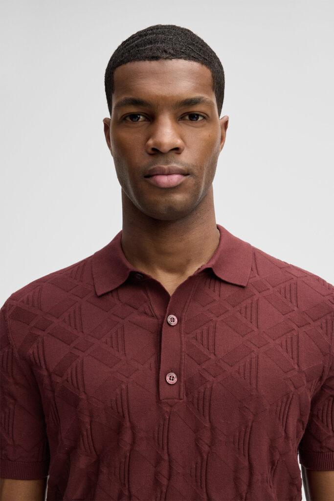 Šveices modes zīmola Strellson vīriešu polo krekls bordo tonī. Izgatavots no 100% kokvilnas ar moderna žakarda adījuma tekstūru. Papildināts ar klasisku aizdari, smalki rievotu apdari un zīmola logotipa detaļām.