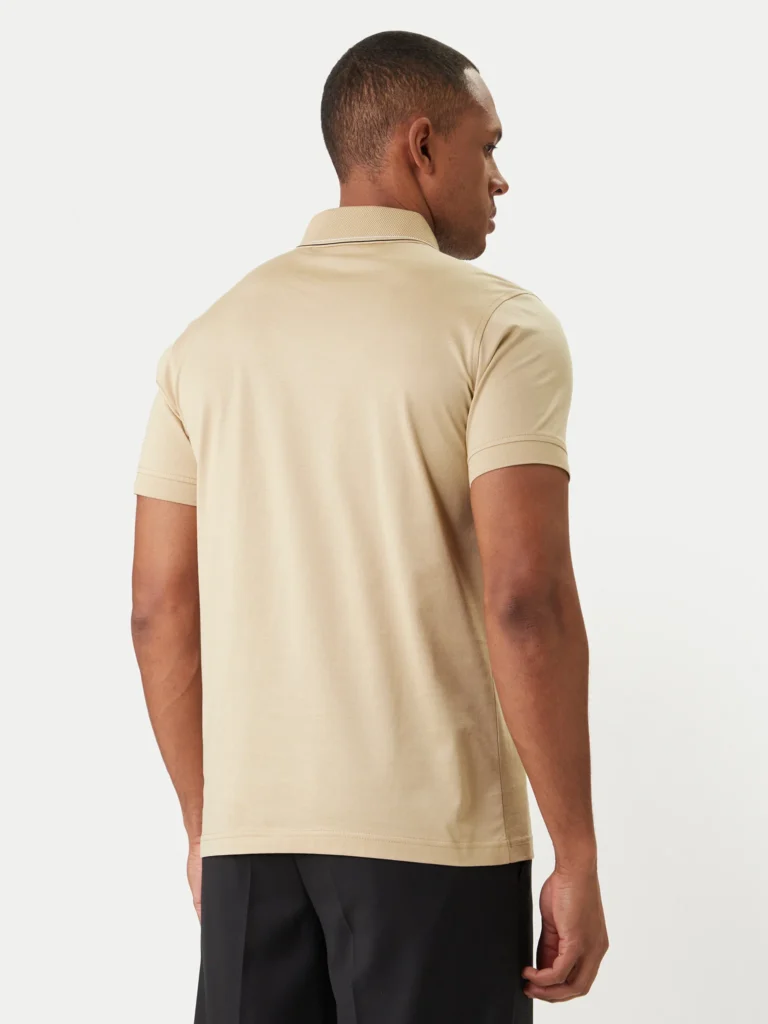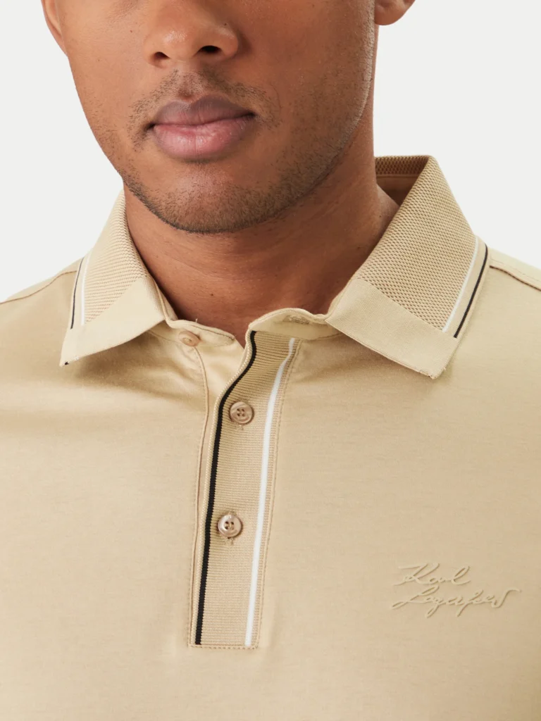 Vācu luksusa zīmola Karl Lagerfeld klasisks vīriešu polo krekls bēšā krāsā. Izgatavots no gluda augstākās kvalitātes kokvilnas materiāla. Papildināts ar smalkām apdares detaļām un zīmola paraksta logotipa vientoņa akcentu.