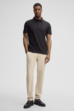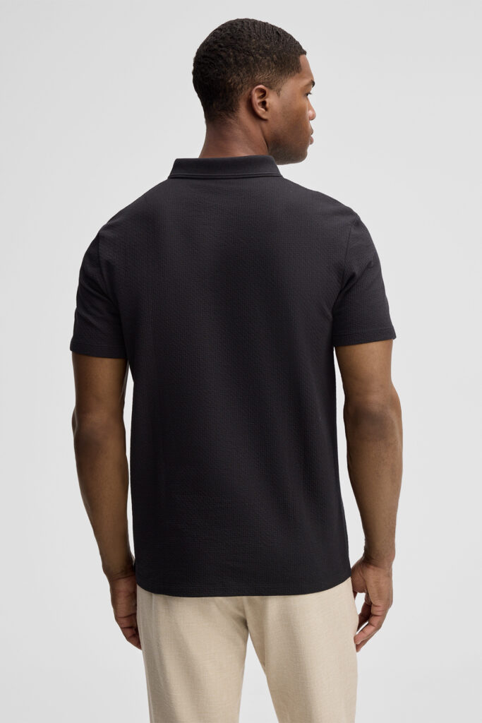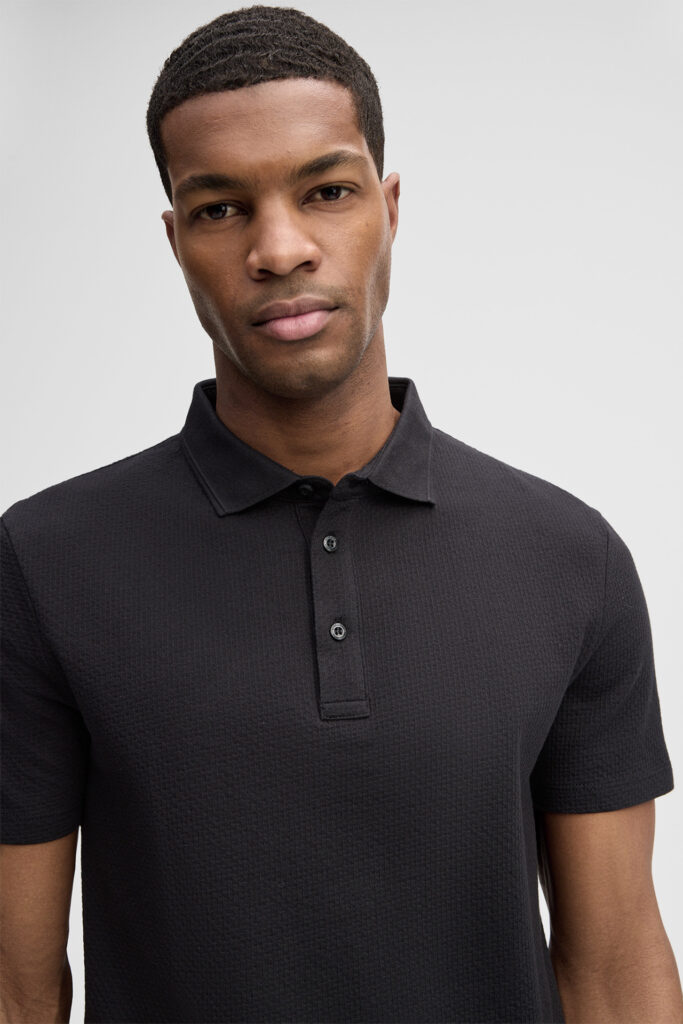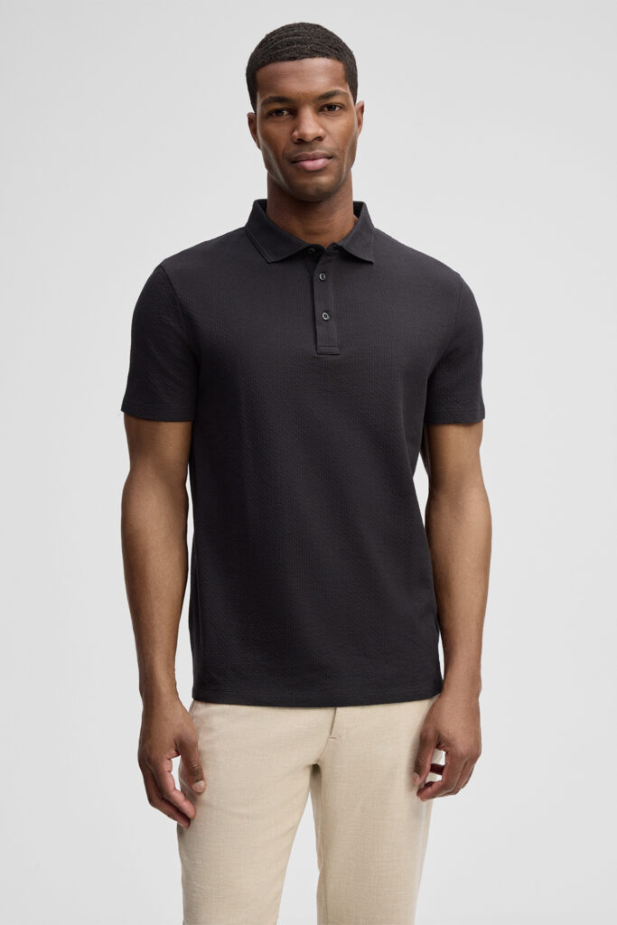 Šveices modes zīmola Strellson vīriešu polo krekls ar smalki rievotu tekstūru melnā krāsā. Izgatavots no 100% organiskās kokvilnas. Papildināts ar klasisku apkakli un saīsinātu 3 pogu aizdari.