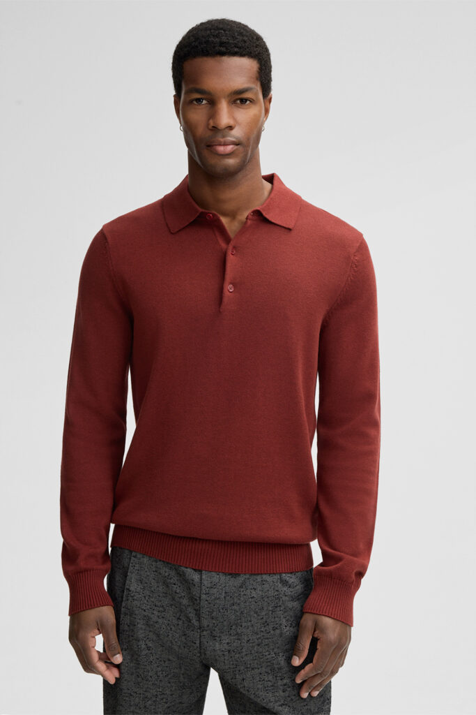 Polo stila džemperis ķieģeļsarkanā krāsā