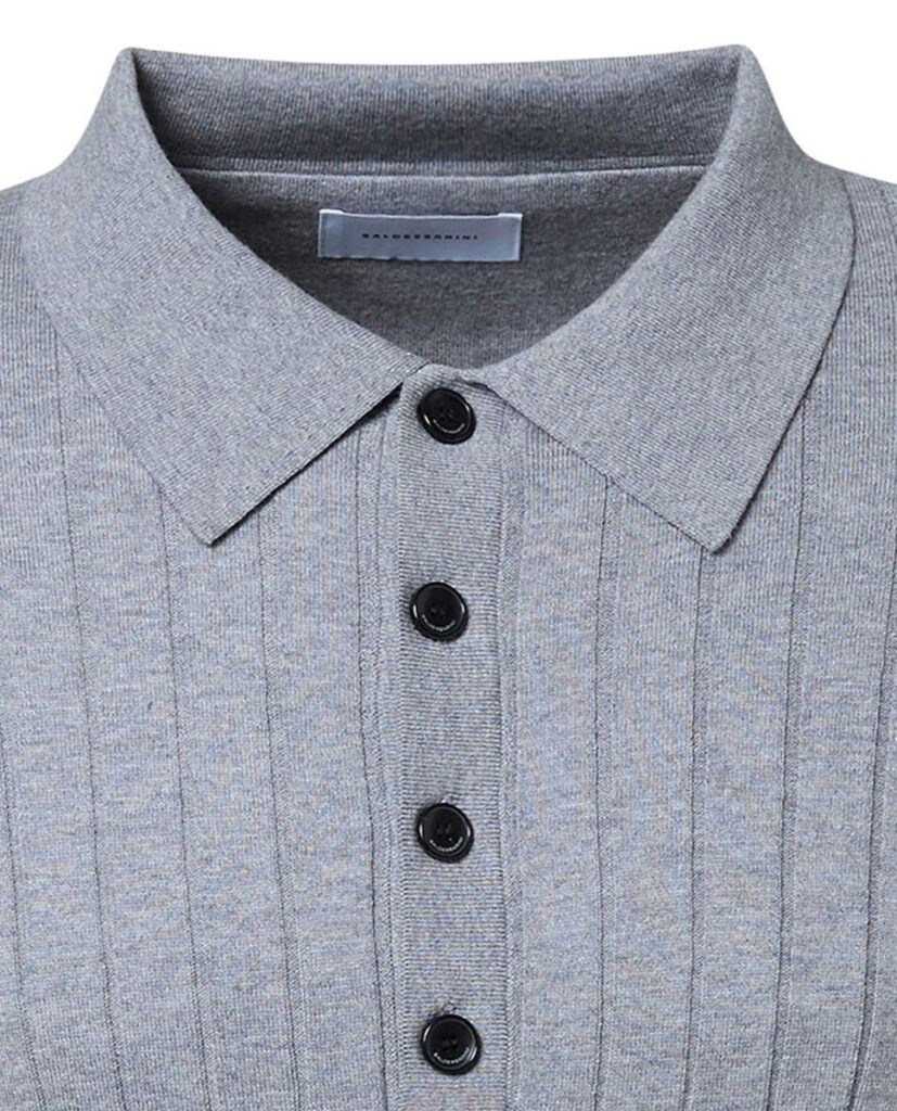 - Apaļš kakla izgriezums ar polo apkakli un 4 pogu aizdari
