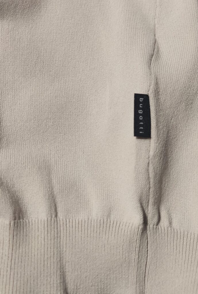 Vācu modes zīmola Bugatti gaiši pelēkbēšs vīriešu polo krekls ar rāvējslēdzēja aizdari. Izgatavots no viskozes maisījuma materiāla. Papildināts ar smalki rievotu apdari, kā arī kontrastējošām detaļām un zīmola logotipa akcentiem.