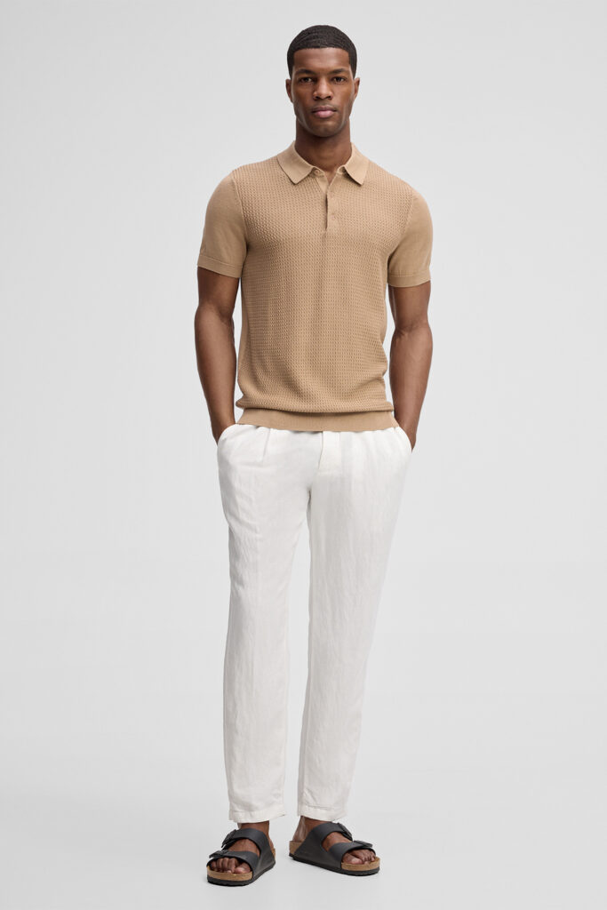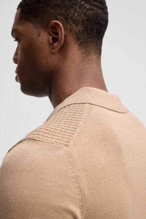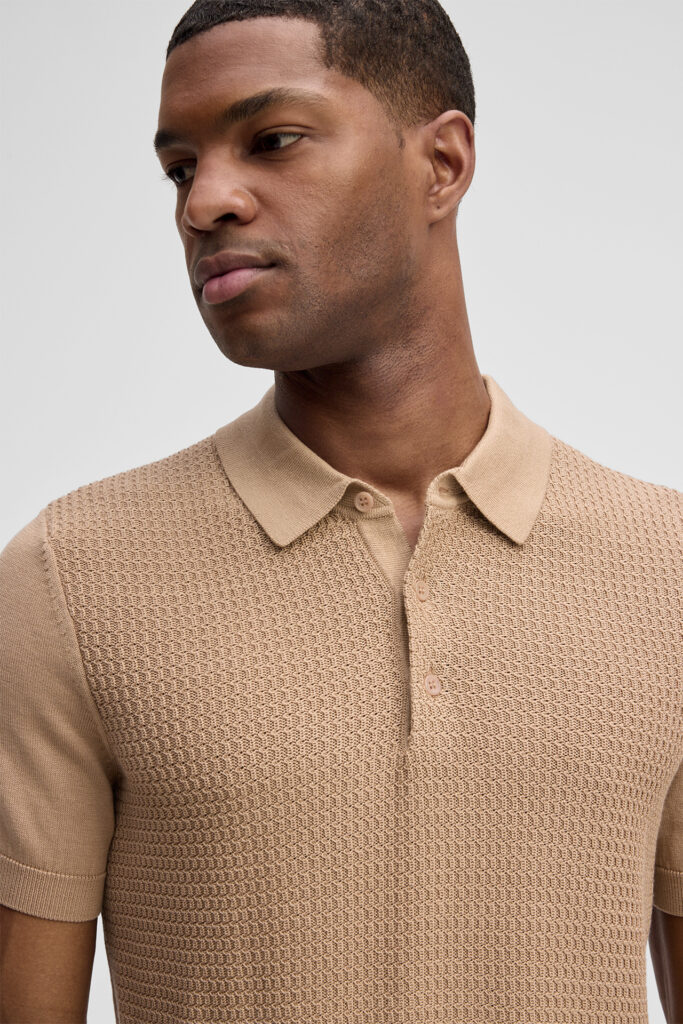 Šveices modes zīmola Strellson vīriešu polo krekls tumši bēšā krāsā. Izgatavots no 100% organiskās kokvilnas ar dekoratīva adījuma tekstūru priekšpusē. Papildināts ar smalki rievotu apdari.