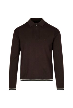 Tumši brūns polo stila džemperis ar rāvējslēdzi