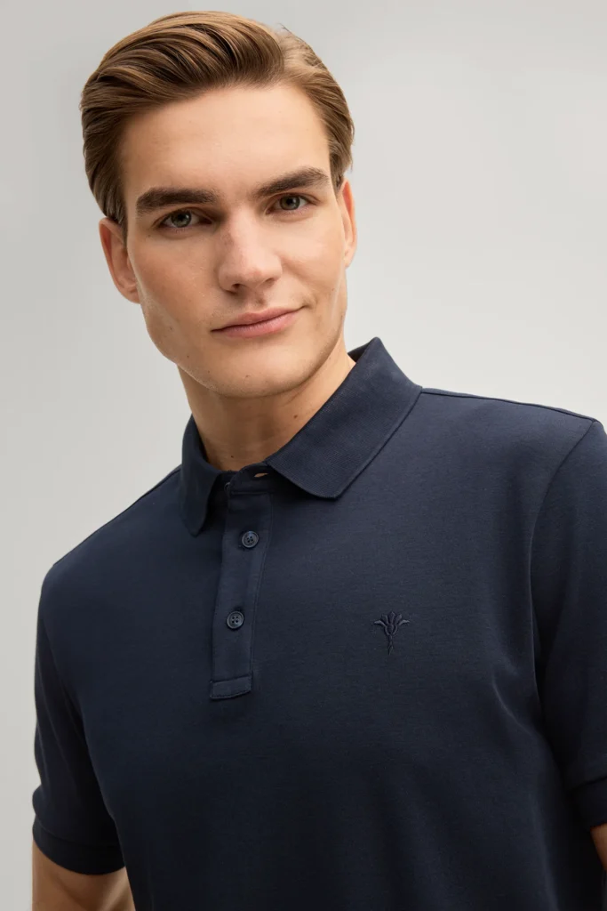 Tumši zils bio kokvilnas polo krekls ar izšuvumu