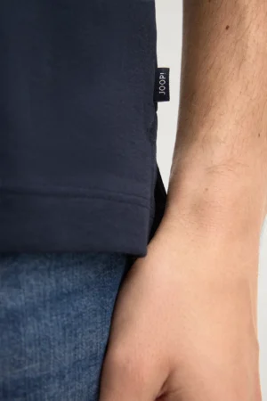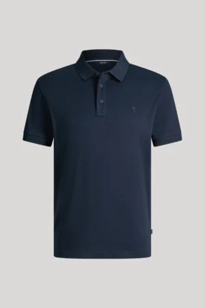 Vācu modes zīmola Joop! klasisks vīriešu polo krekls tumši zilā krāsā. Izgatavots no blīva un gluda organiskās kokvilnas materiāla. Papildināts ar askētisku zīmola ikoniskā simbola- rudzupuķes vientoņa izšuvumu un logo emblēmu sānu vīlē.