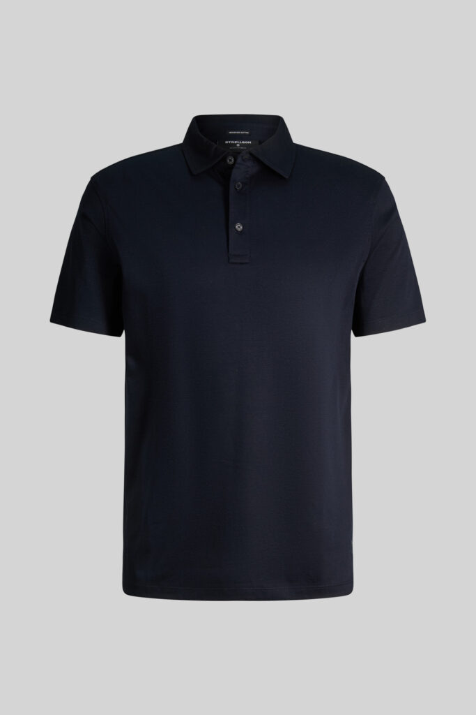 Šveices modes zīmola Strellson klasisks vīriešu polo krekls tumši zilā krāsā. Izgatavots no blīva un gluda augstākās kvalitātes kokvilnas materiāla. Papildināts ar askētisku vientoņa logotipu apakšmalā.