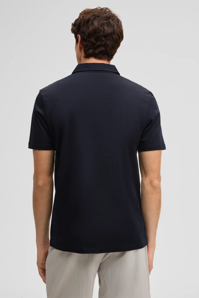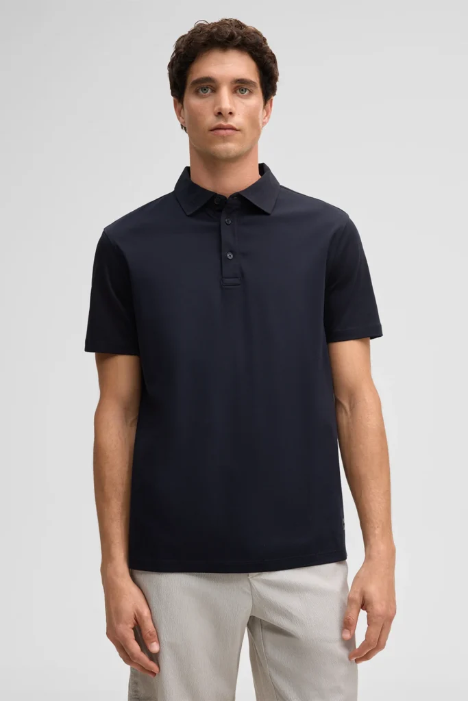 Šveices modes zīmola Strellson klasisks vīriešu polo krekls tumši zilā krāsā. Izgatavots no blīva un gluda augstākās kvalitātes kokvilnas materiāla. Papildināts ar askētisku vientoņa logotipu apakšmalā.