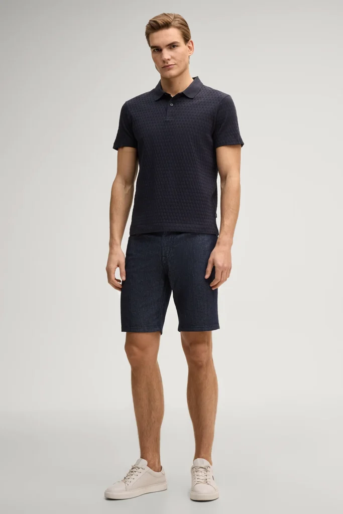 Tumši zils kokvilnas polo krekls ar grafisku struktūru