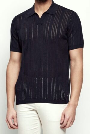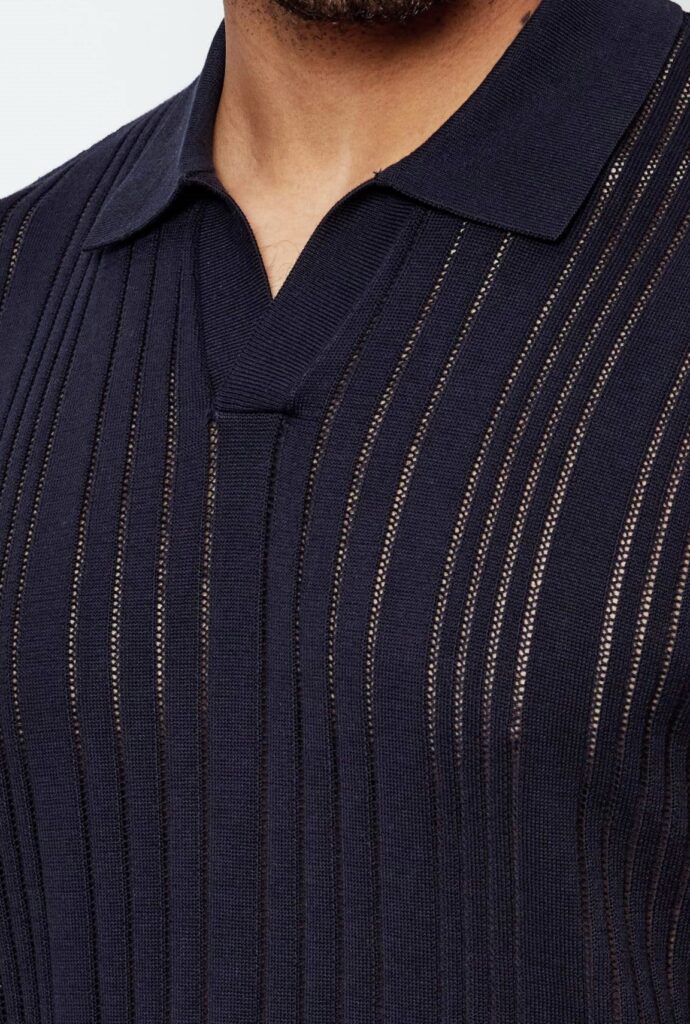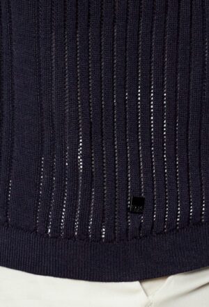 Tumši zils polo krekls ar caurspīdīgu svītru rakstu