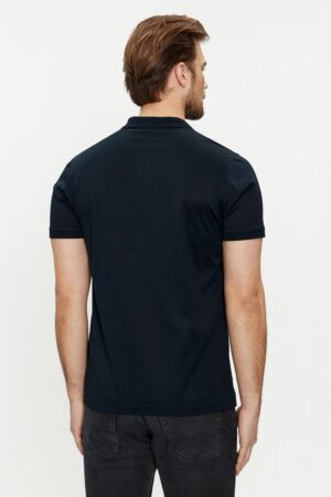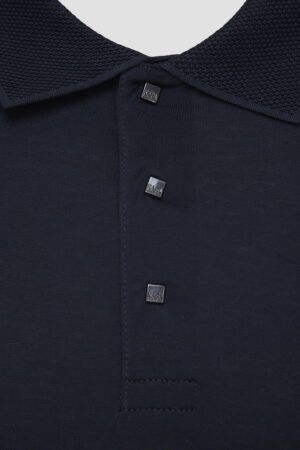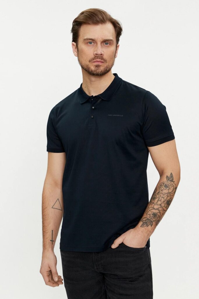 Vācu luksusa zīmola Karl Lagerfeld vīriešu polo krekls tumši zilā krāsā ar kvadrātveida spiedpogu aizdari. Izgatavots no 100% augstākās kvalitātes kokvilnas. Papildināts ar smalku zīmola logotipa gumijas akcentu un nelieliem sānu šķēlumiem.