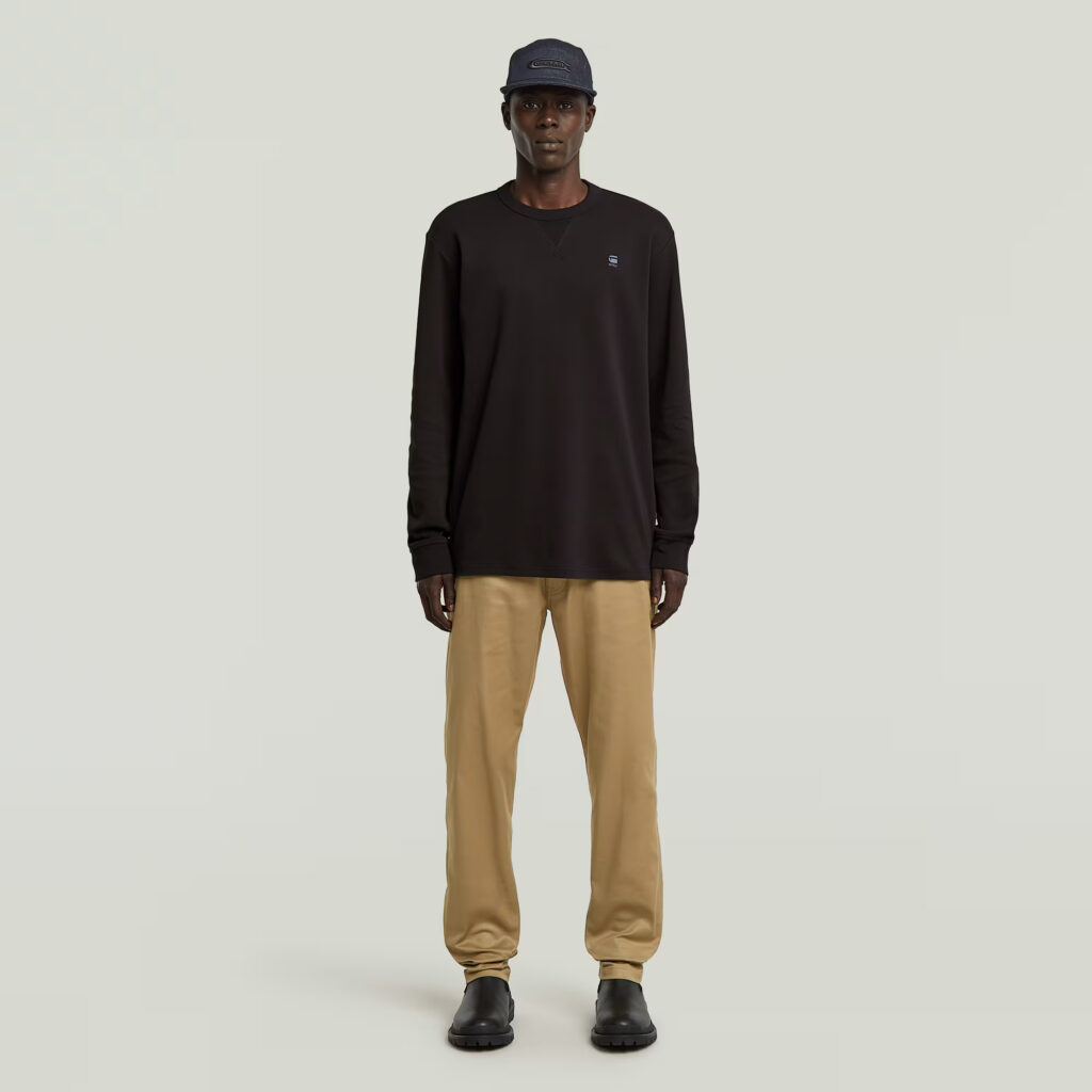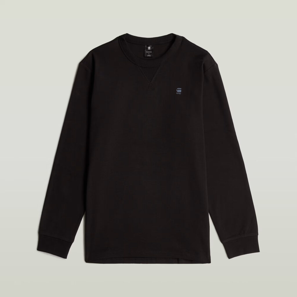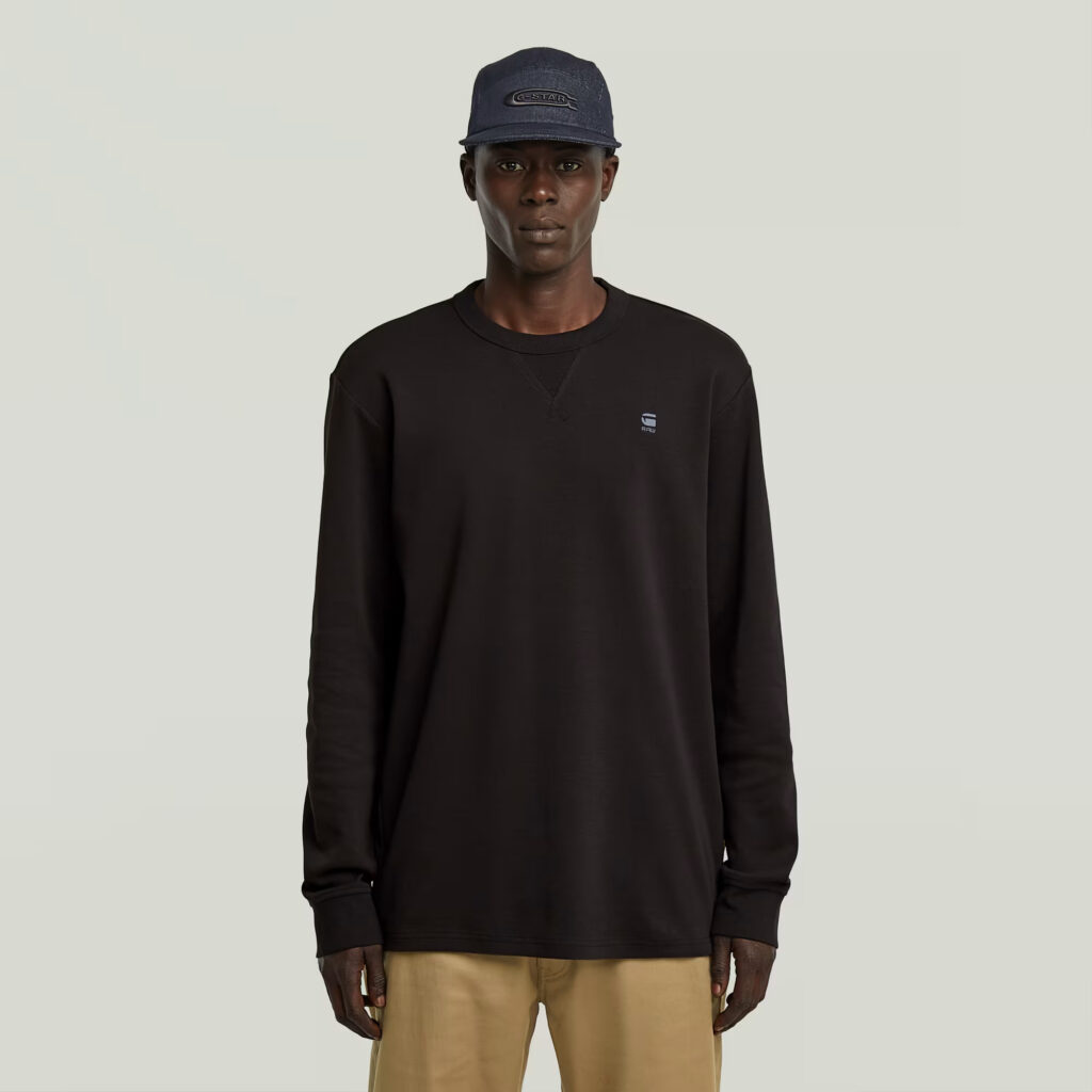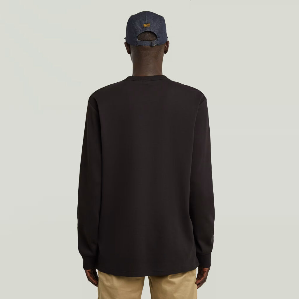 Nīderlandes zīmola G-Star Raw melns vīriešu T-krekls ar garām piedurknēm. Izgatavots no blīva un mīksta organiskās kokvilnas materiāla. Papildināts ar smalku zīmola logotipa izšuvumu.