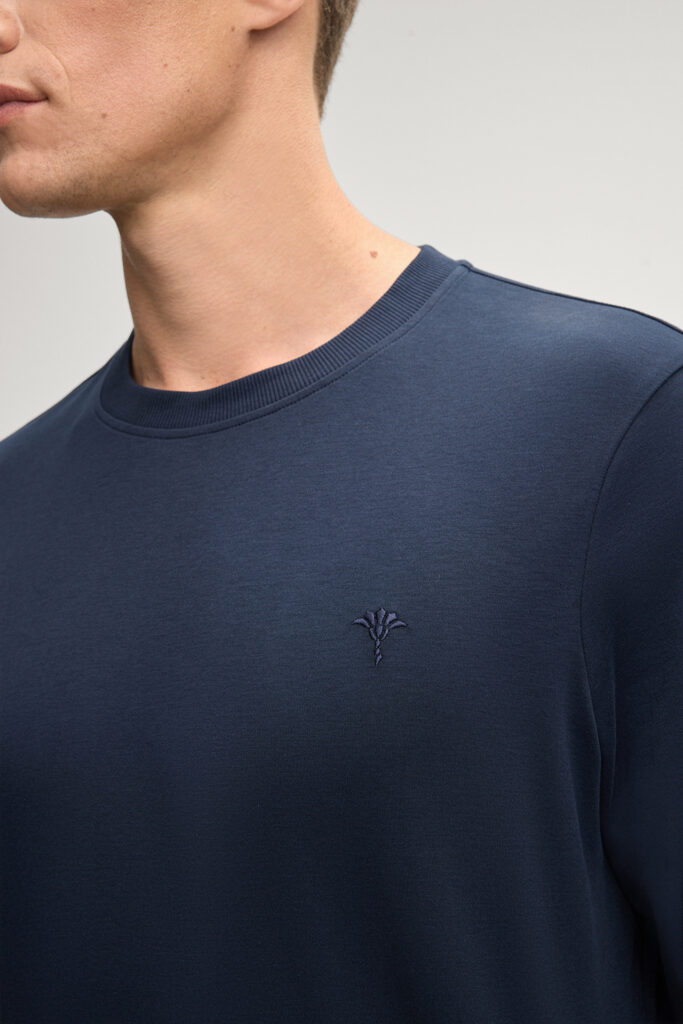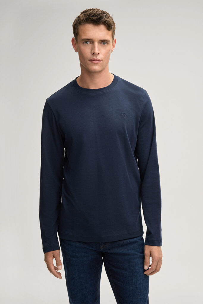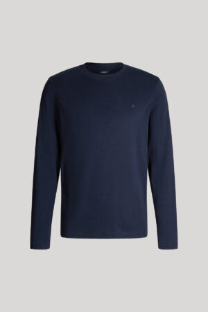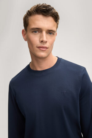 Vācu modes zīmola Joop! tumši zils vīriešu T-krekls ar garām piedurknēm. Izgatavots no blīva bio kokvilnas materiāla. Papildināts ar ikonisko rudzupuķes vientoņa izšuvumu un zīmola emblēmu sānu vīlē.