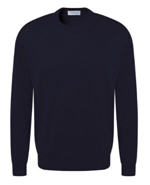Austriešu premium klases modes zīmola Baldessarini klasiska dizaina vīriešu džemperis tumši zilā krāsā. Izgatavots no plānas kokvilnas dzijas. Papildināts ar smalki rievotu apdari.