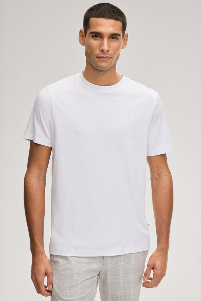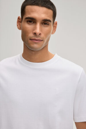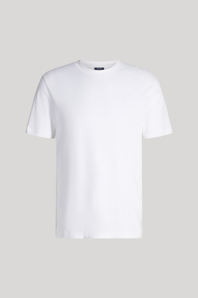 Vācu modes zīmola Joop! vīriešu T-krekls baltā krāsā. Izgatavots no blīva augstākās kvalitātes bio kokvilnas materiāla. Papildināts ar askētisku zīmola ikoniskā simbola- rudzupuķes vientoņa izšuvumu un kontrastējošu logo emblēmu sānā.