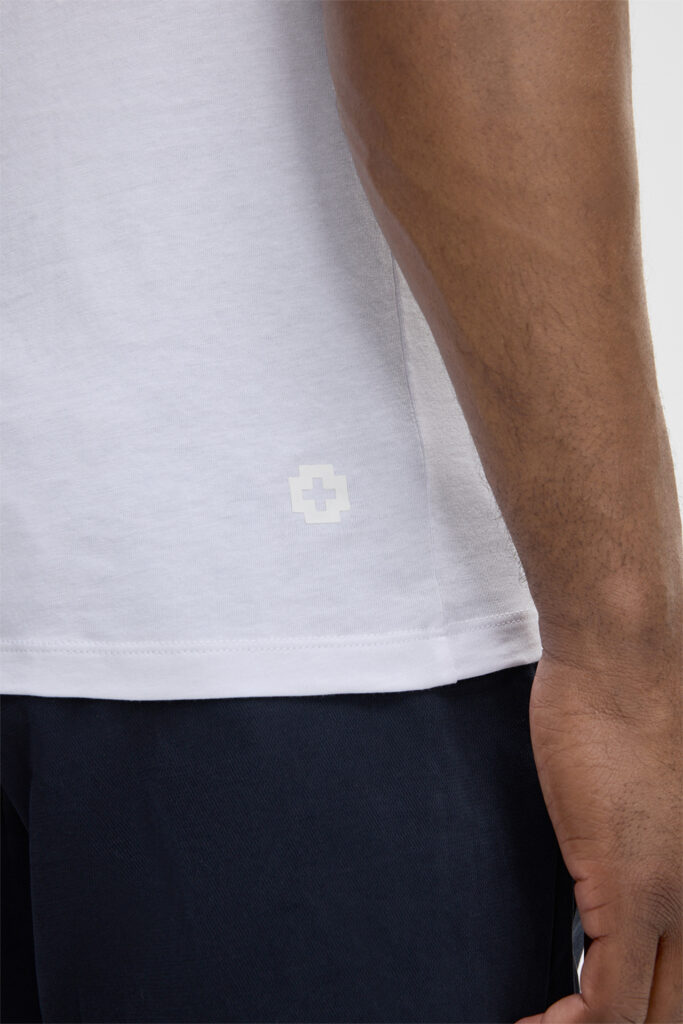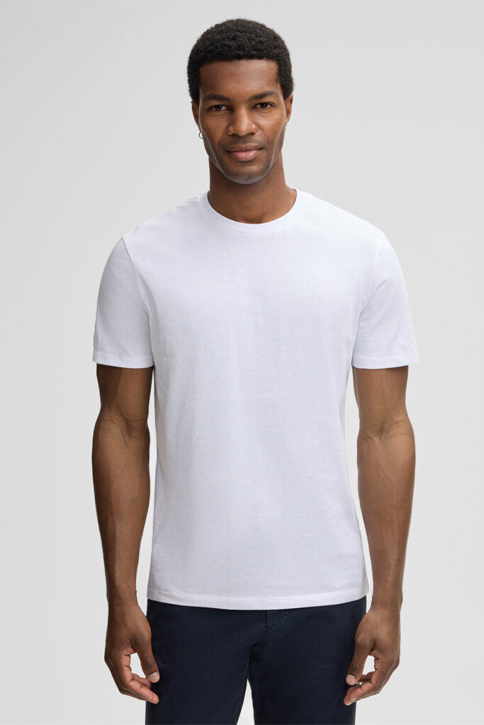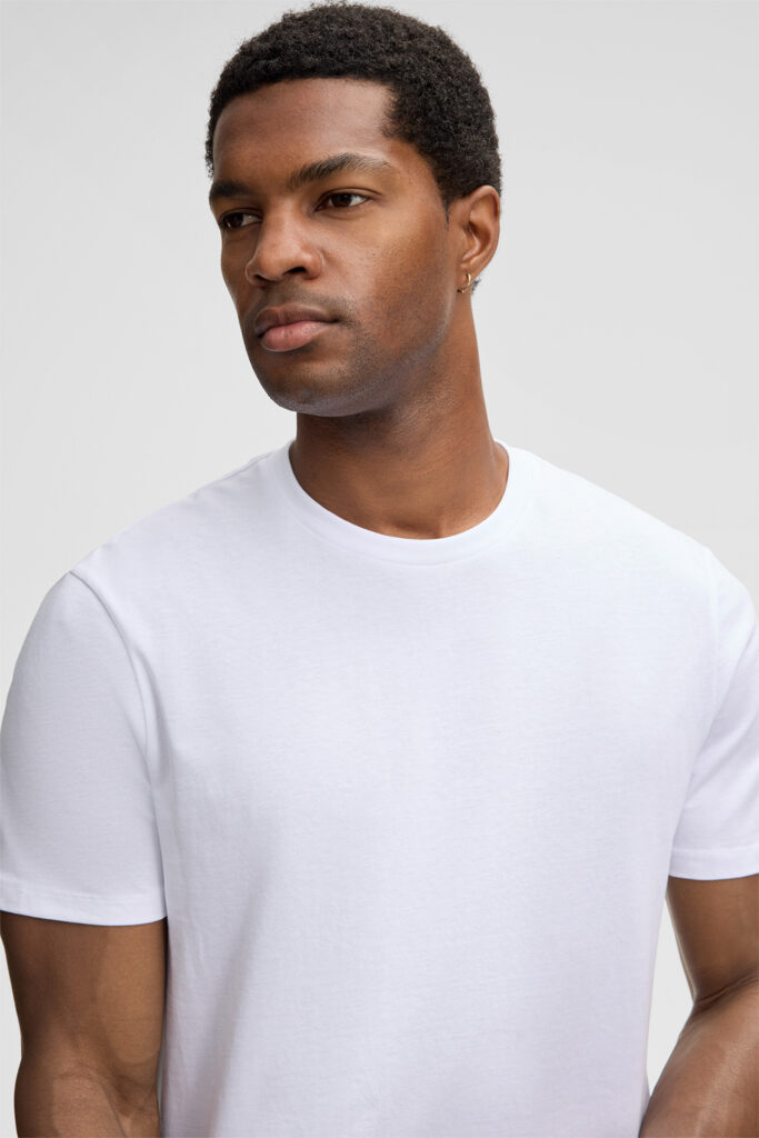 Šveices modes zīmola Strellson vīriešu T- krekls baltā krāsā no viegla un blīvi austa kokvilnas materiāla. Papildināts ar dubultu apdari un askētisku zīmola logotipu apakšmalā.