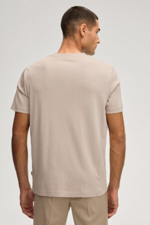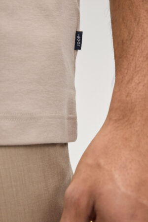 Vācu modes zīmola Joop! vīriešu T-krekls pelēcīgi bēšā krāsā. Izgatavots no blīva augstākās kvalitātes bio kokvilnas materiāla. Papildināts ar askētisku zīmola ikoniskā simbola- rudzupuķes vientoņa izšuvumu un kontrastējošu logo emblēmu sānā.