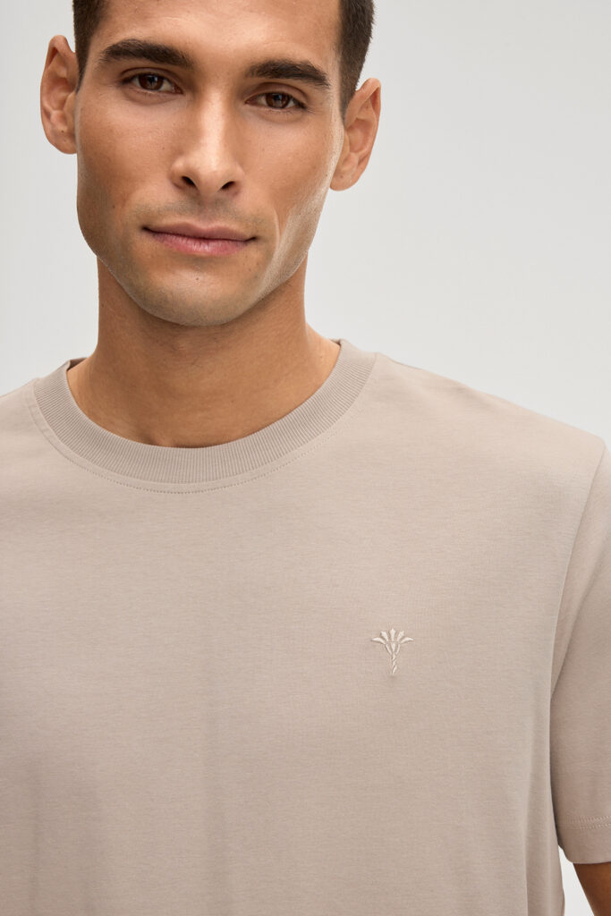 Bēšs bio kokvilnas T-krekls ar logo izšuvumu