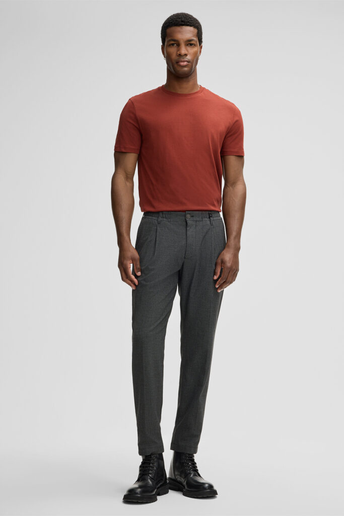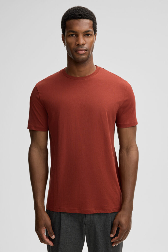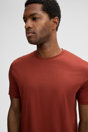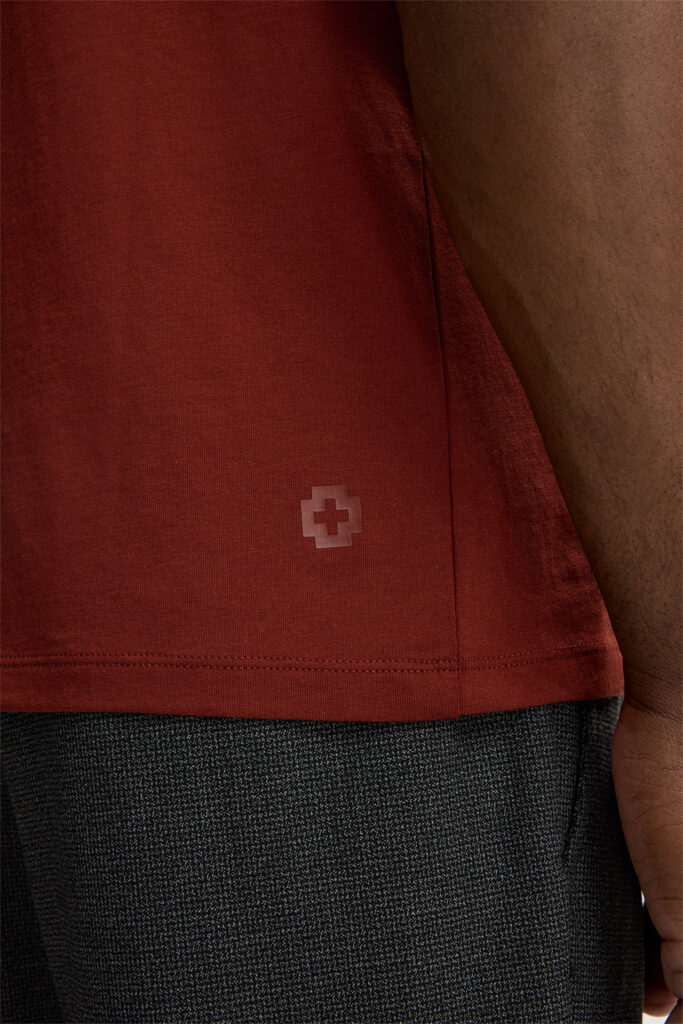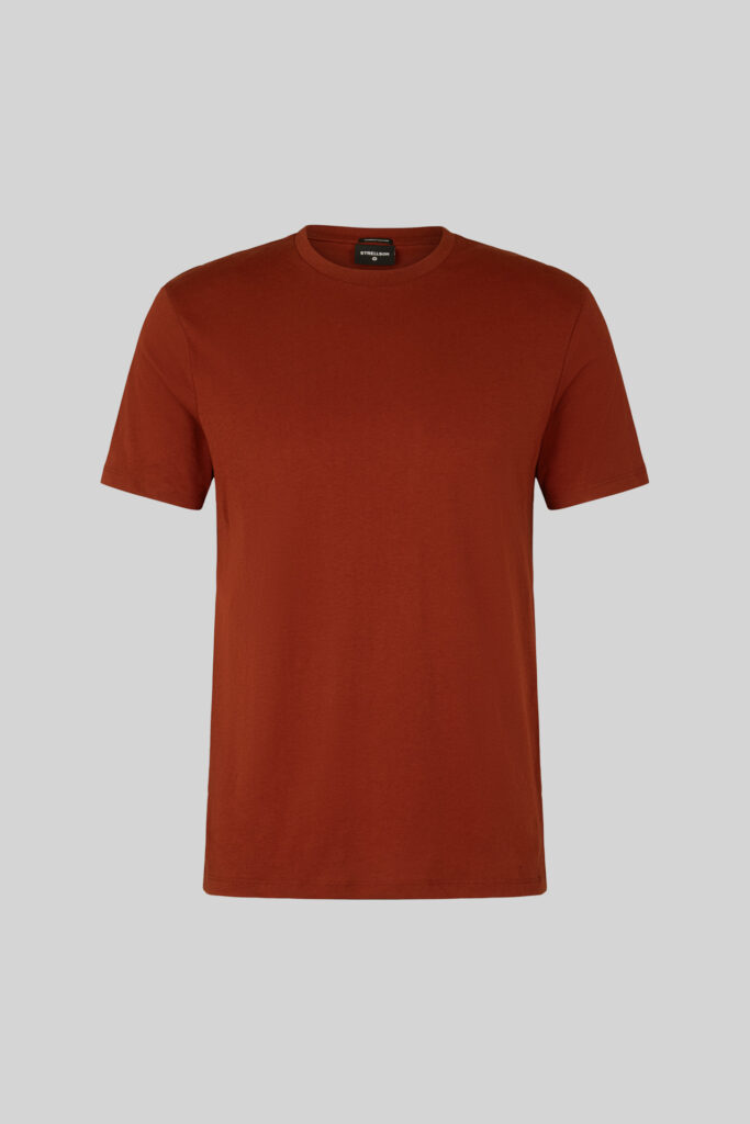 Šveices modes zīmola Strellson vīriešu T- krekls ķieģeļsarkanā krāsā no viegla un blīvi austa kokvilnas materiāla. Papildināts ar dubultu apdari un askētisku zīmola logotipu apakšmalā.