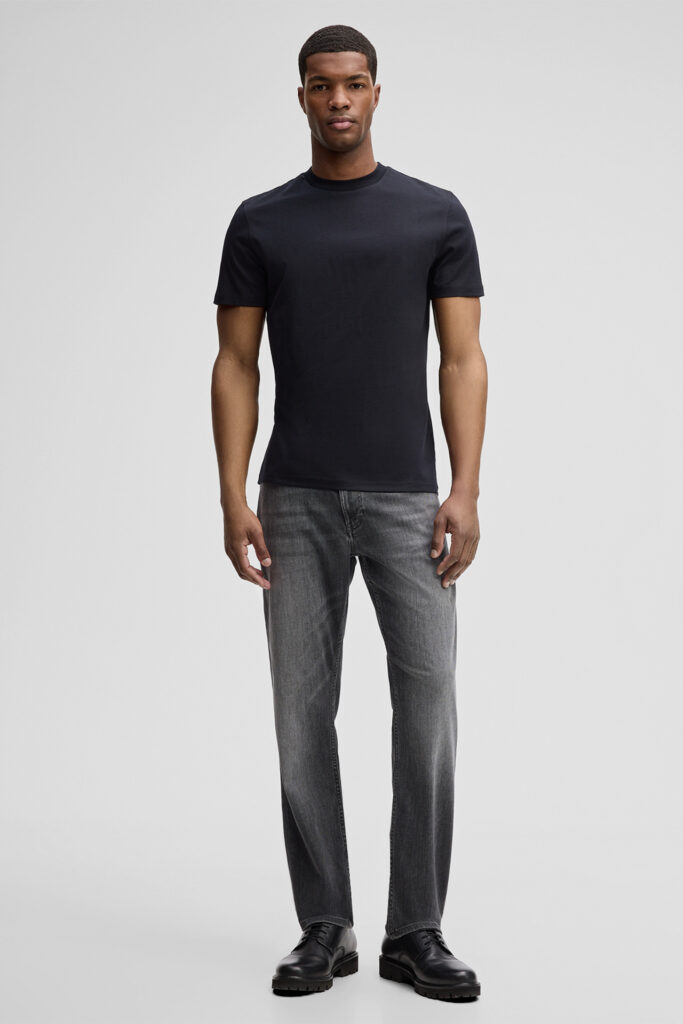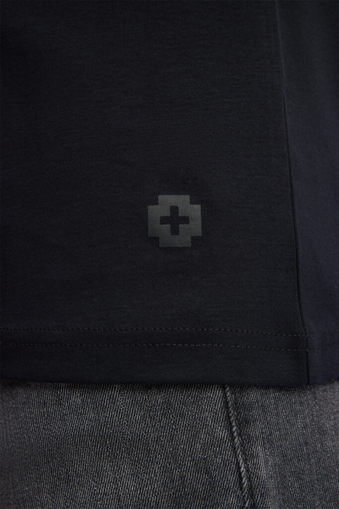 Šveices modes zīmola Strellson melns askētiska dizaina T- krekls vīriešiem. Izgatavots no blīva augstākās kvalitātes kokvilnas materiāla ar zīdainu struktūru. Papildināts ar dubultu apdari un askētisku zīmola logotipu apakšmalā.