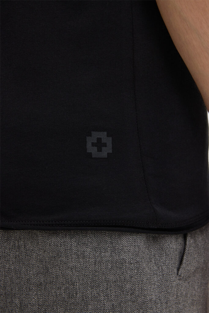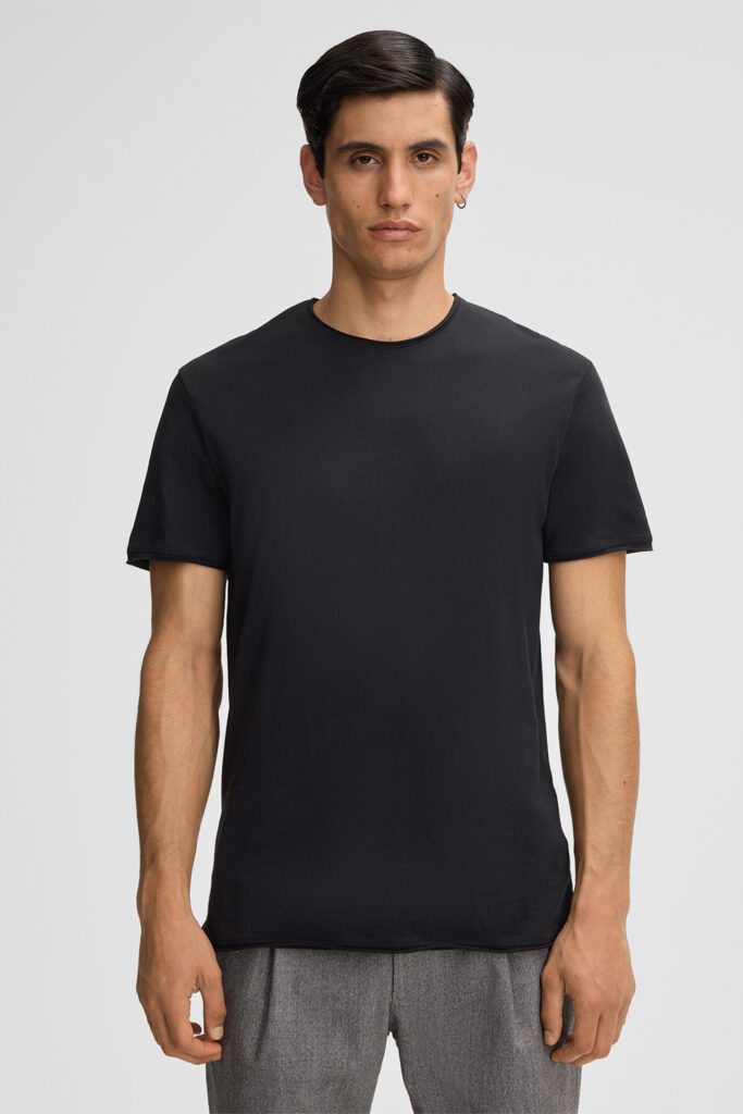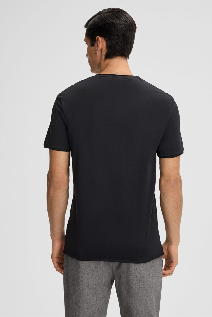 Šveices modes zīmola Strellson melns vīriešu T- krekls no viegla kokvilnas materiāla. Papildināts ar neapstrādāta stila apdari un askētisku zīmola logotipu apakšmalā.
