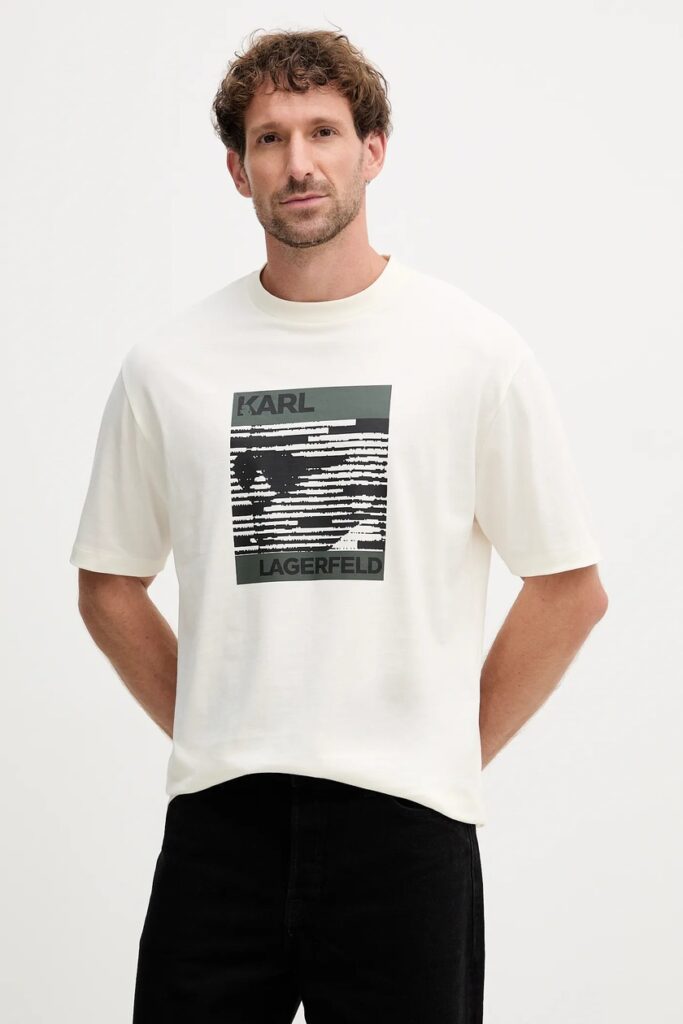 Krēmbalts T-krekls ar Karl dizaina attēlu