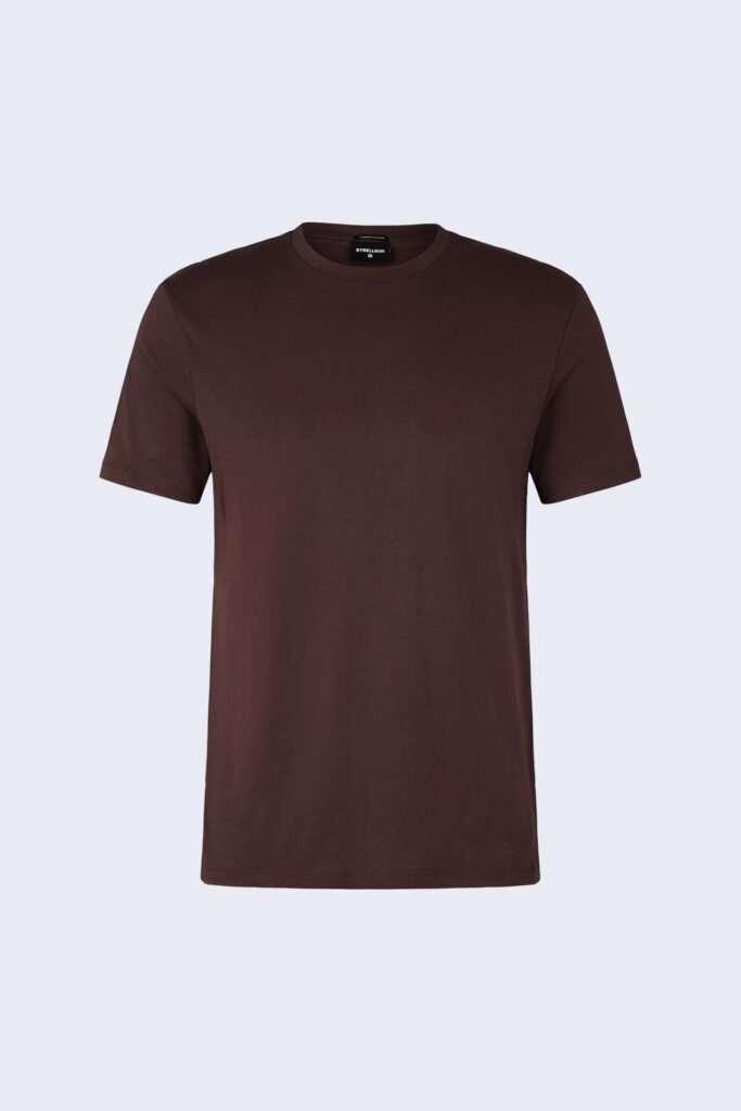 Šveices modes zīmola Strellson šokolādes brūns askētiska dizaina T- krekls vīriešiem. Izgatavots no blīva augstākās kvalitātes kokvilnas materiāla ar zīdainu struktūru. Papildināts ar dubultu apdari un askētisku zīmola logotipu apakšmalā.