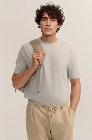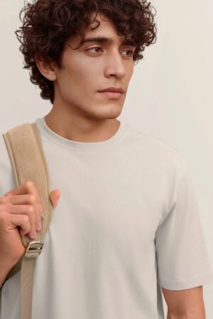 Pelēkbēšs kokvilnas T-krekls vīriešiem