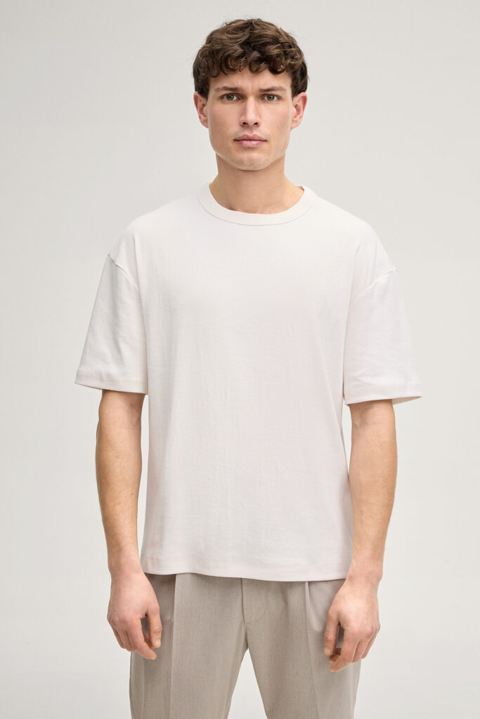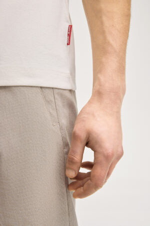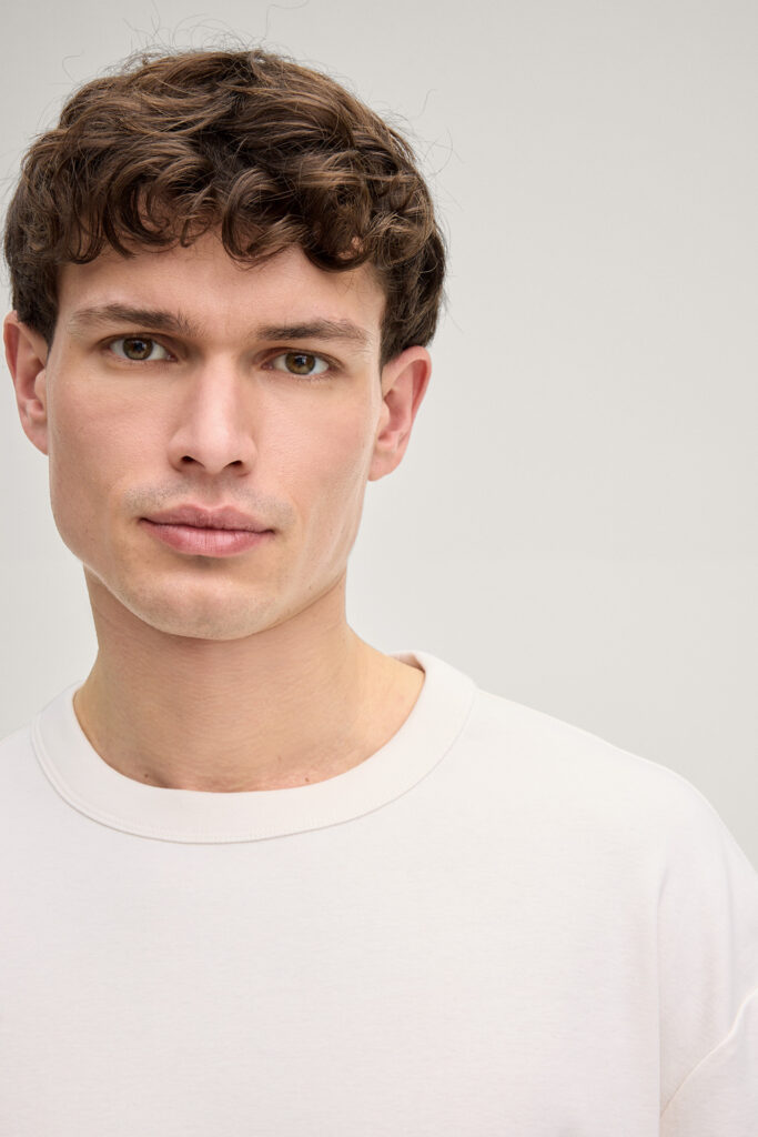 Vācu modes zīmola Joop! vīriešu T-krekls gaiši pelēcīgi bēšā krāsā. Izgatavots no 100% kokvilnas. Papildināts ar kontrastējošu zīmola emblēmas akcentu sānu vīlē.
