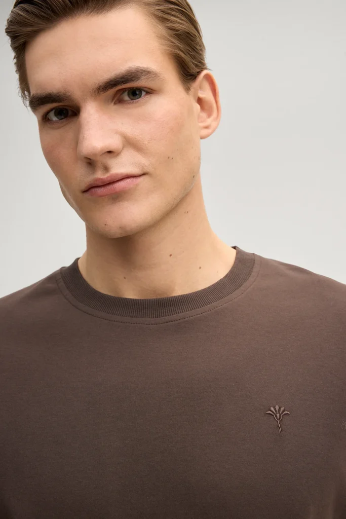 Brūns bio kokvilnas T-krekls ar logo izšuvumu