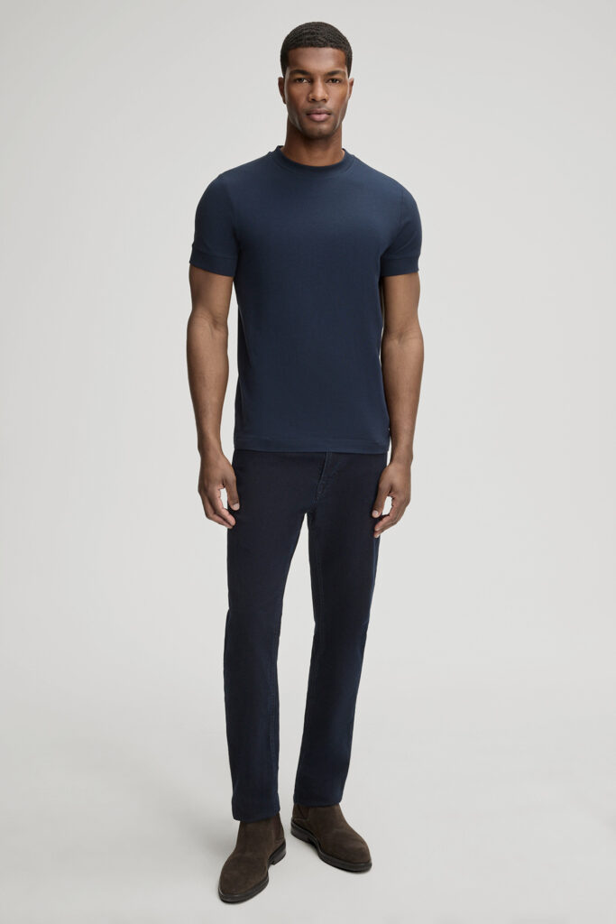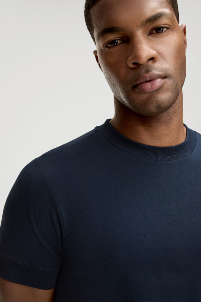 Tumši zils elastīgas kokvilnas T-krekls vīriešiem