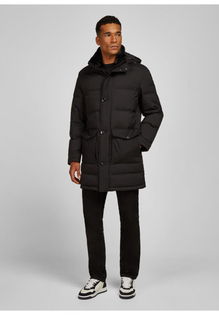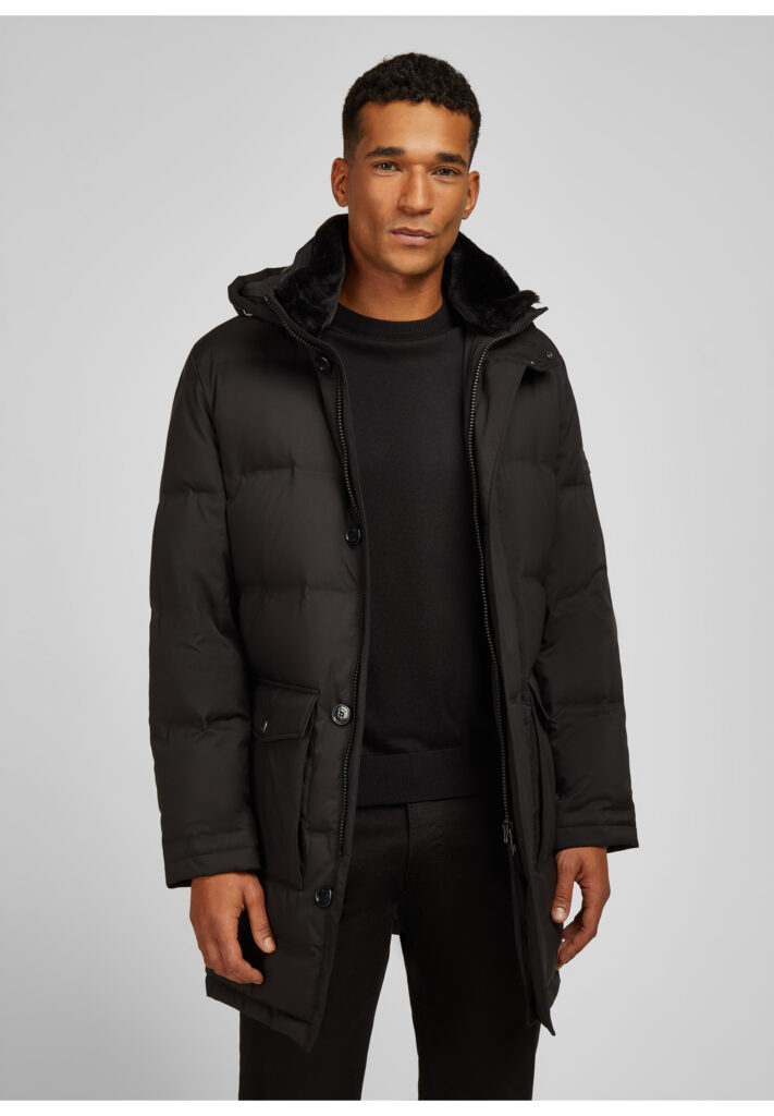 Polsterēts mētelis ar noņemamu apkakli un kapuci