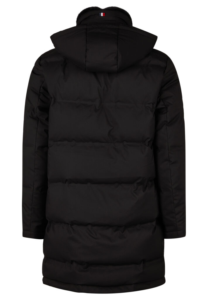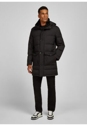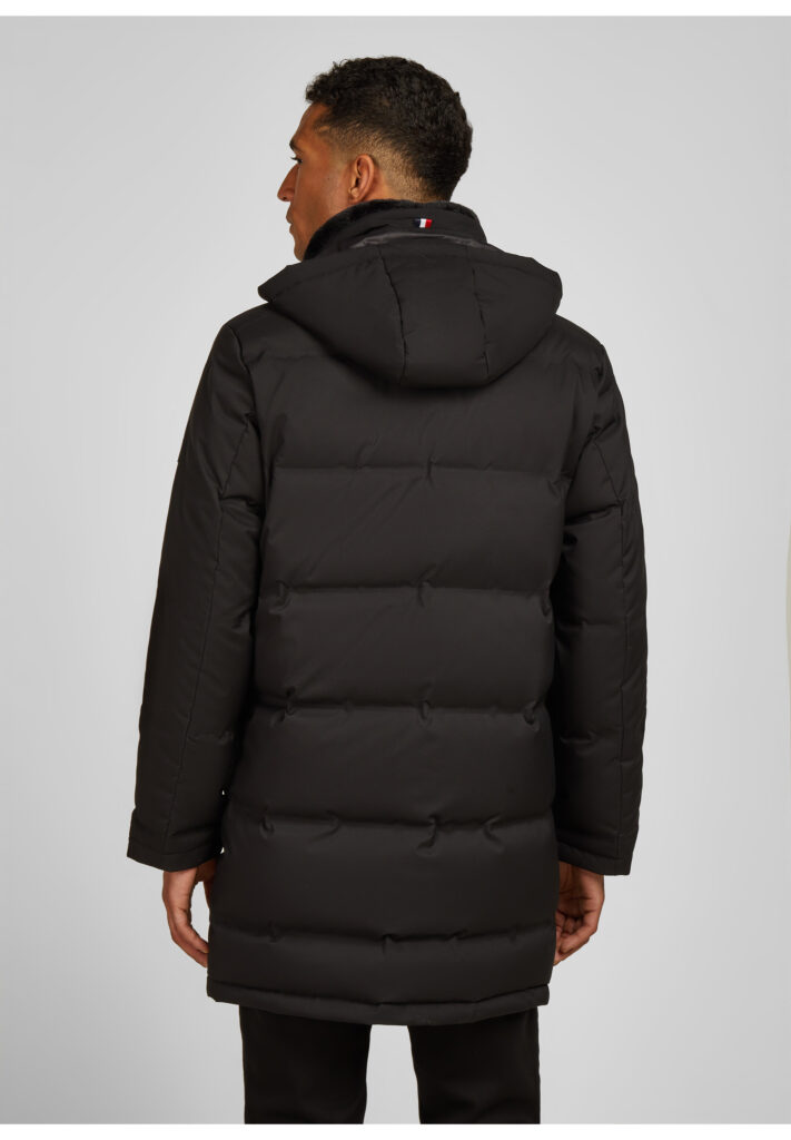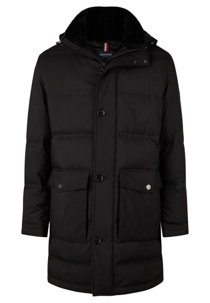 Franču zīmola HECHTER PARIS polsterēts vīriešu ziemas mētelis ar horizontālu stepējumu melnā krāsā. Izgatavots no komfortabliem augsto tehnoloģiju materiāliem. Papildināts gan ar noņemamu mākslīgās kažokādas apkakli, gan ar noņemamu savelkamo kapuci. Akcentēts ar zīmola logotipa detaļām.