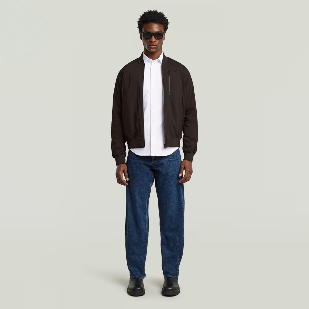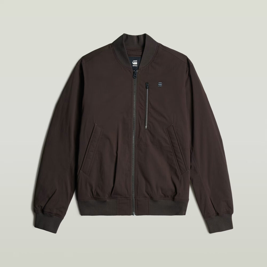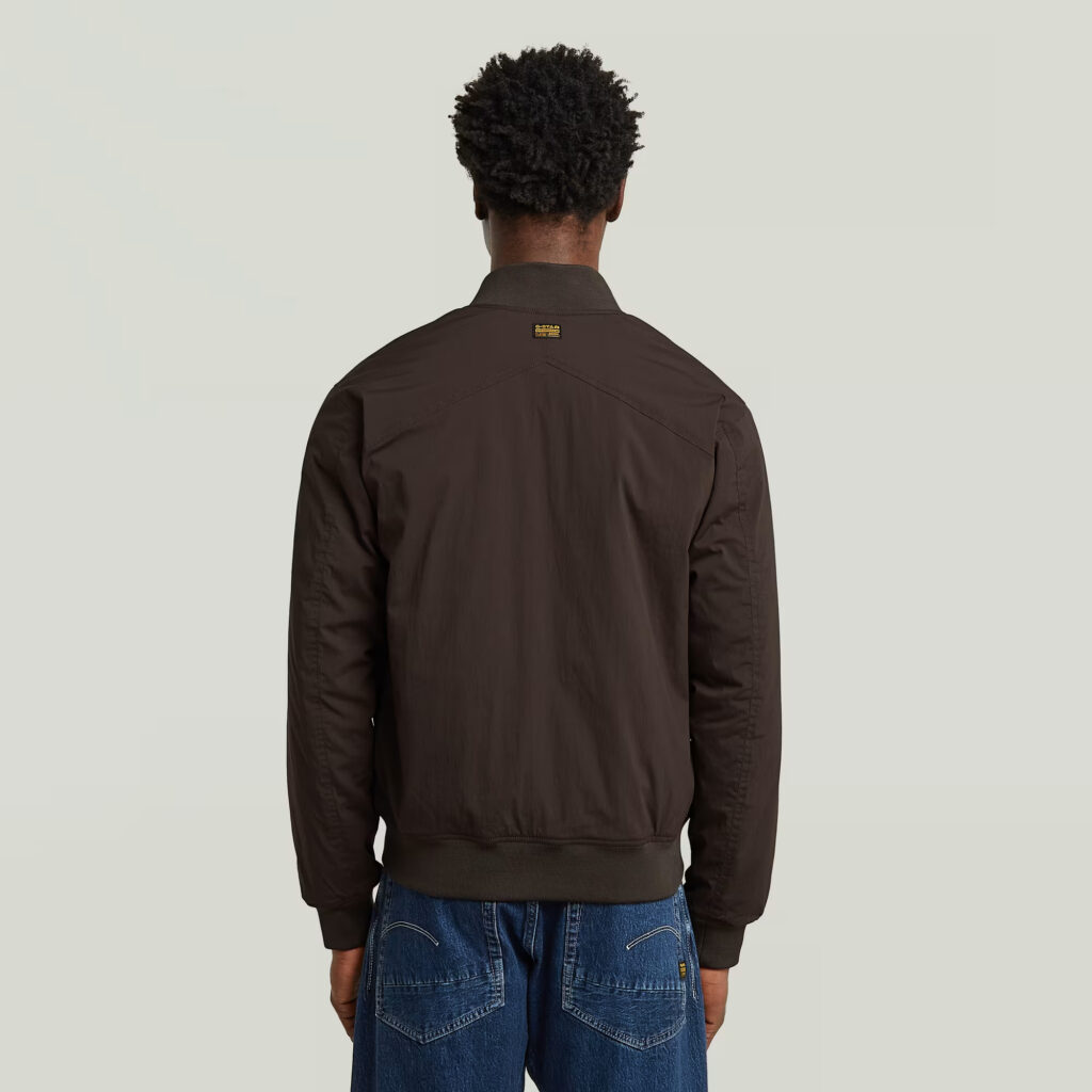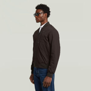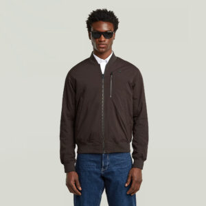 Nīderlandes zīmola G-Star Raw tumši brūna vīriešu bomber stila virsjaka ar nedaudz paaugstinātu apkakli un rāvējslēdzēja aizdari. Izgatavota no elastīga kokvilnas un pārstrādāta poliamīda materiāla. Papildināta ar viegli siltinātu, stepētu oderi un smalki rievotu elastīgo apdari. Akcentēta ar zīmola logotipa detaļām.