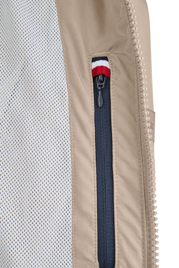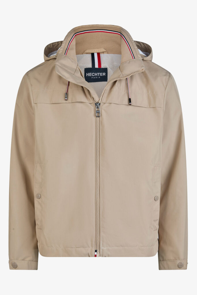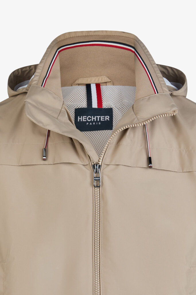 Franču zīmola HECHTER PARIS tumši bēša vīriešu vējjaka ar augstu apkakli un noņemamu kapuci. Izgatavota no elpojoša, ūdeni un vēju aizturoša materiāla. Papildināta ar regulējamām spiedpogu aizdares aprocēm un iekšpusē savelkamu apakšmalu. Akcentēta ar zīmola logotipa detaļām.