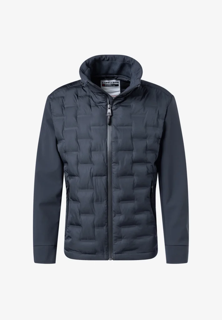 Šveices modes zīmola Strellson tumši pelēkzila vīriešu vējjaka ar polsterētu vestes daļu. Izgatavota no vēju aizturoša augstākās kvalitātes materiāla. Papildināta ar vieglu polsterējumu, augstu apkakli un daļēji elastīgu, smalki rievotu apdari. Akcentēta ar zīmola logotipa detaļām.