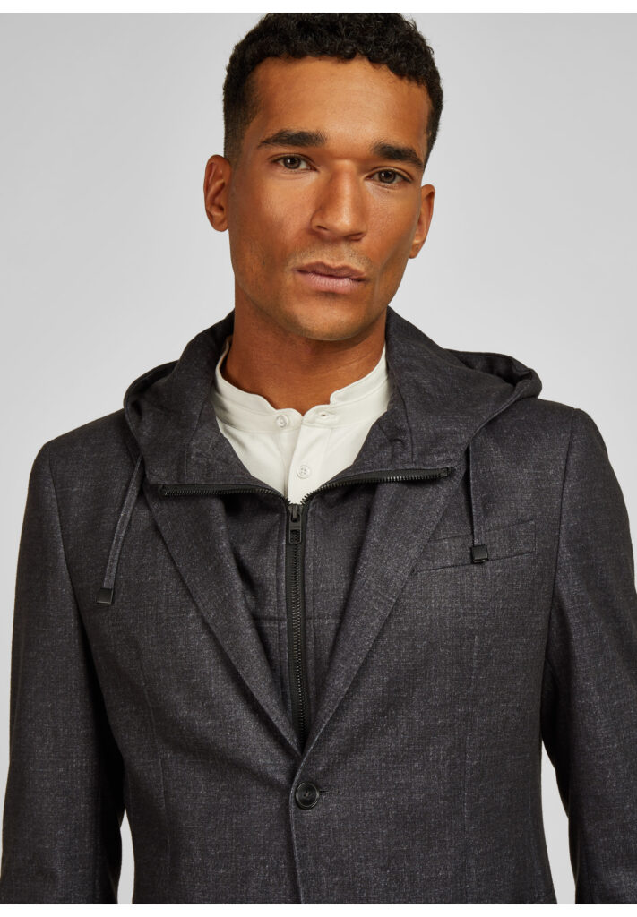 Tumši pelēka žakete ar noņemamu kapuces daļu